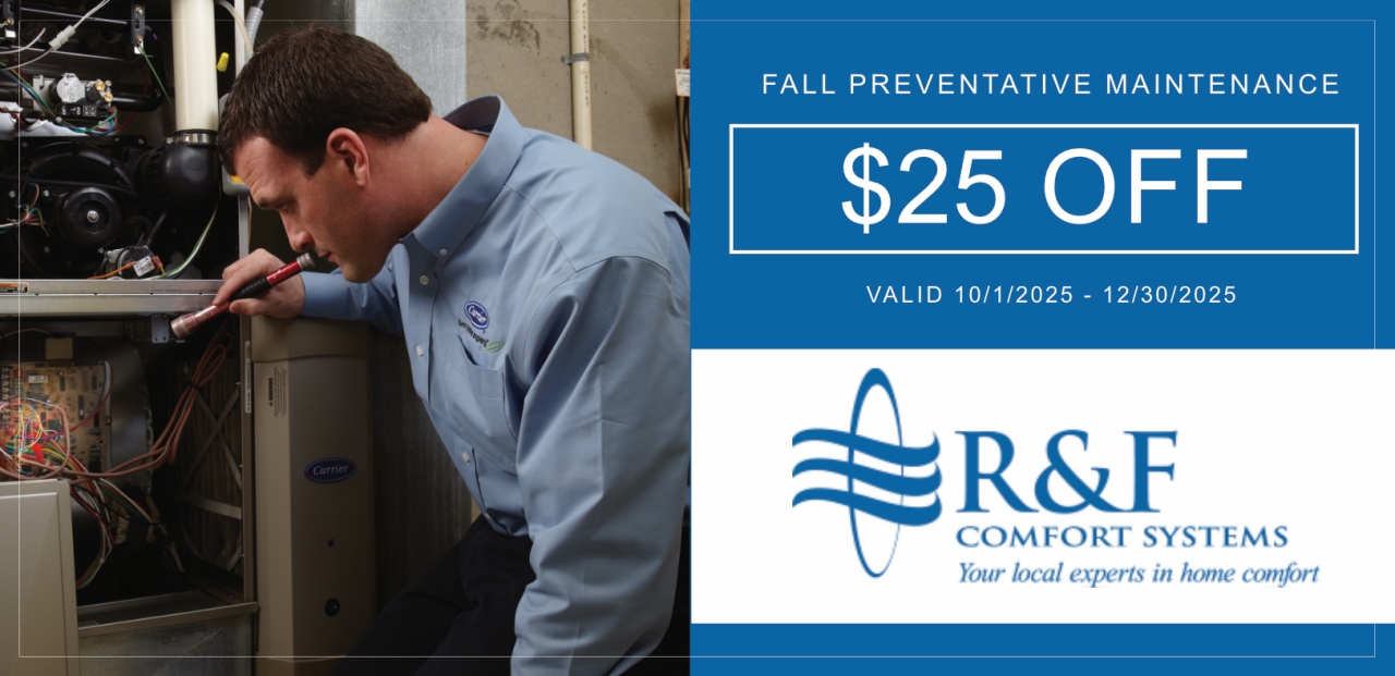 R&F Comfort Systems provides sales, service and installation for all types of heating and air conditioning systems. We’ve set high standard of excellence for ourselves and our mission is to provide complete customer satisfaction.
